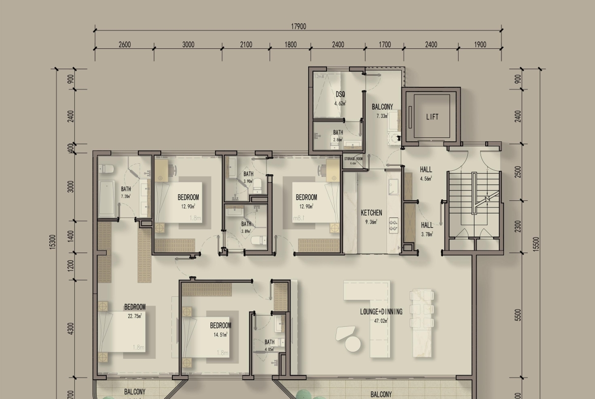 •⁠ ⁠4 bedroom+DSQ 213 sqm From 33.65M to 38.34M